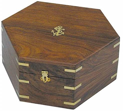 Maritime Holzkiste/Truhe/Schatzkiste - Messingscharniere-25 cm- sechseckig- auch für Sextant
