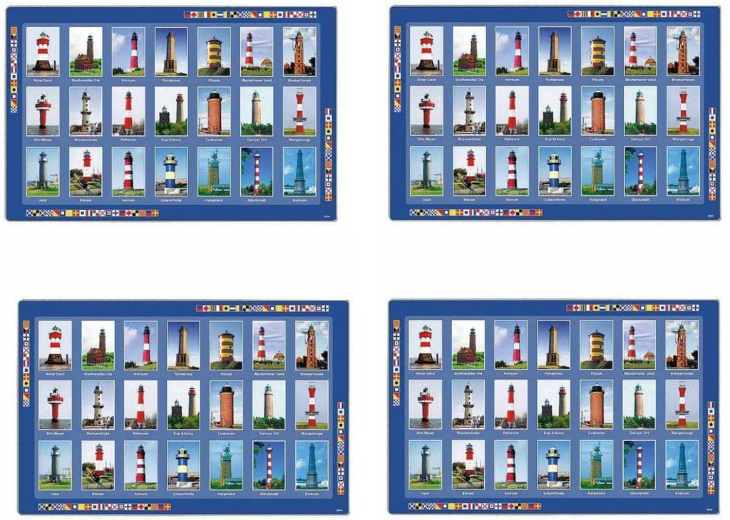 - 4 Stück- Maritime Platzdeckchen mit deutschen Leuchttürmen. Die Platzdeckchen sind aus Pvc, stabil, biegsam und abwaschbar.
