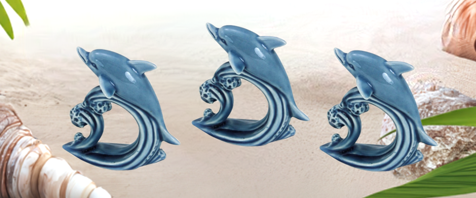 3X Kleiner Delphin- glasiert- Maritime Deko- Figur