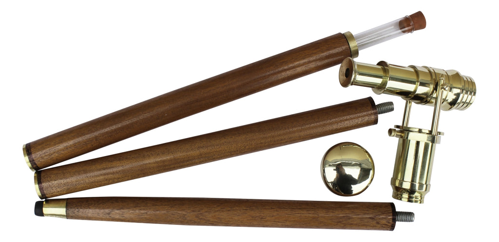 Spazier/Wanderstock Holz/Messing- integr. Teleskop und Schnapsröhrchen- 3geteilt- Messingknauf