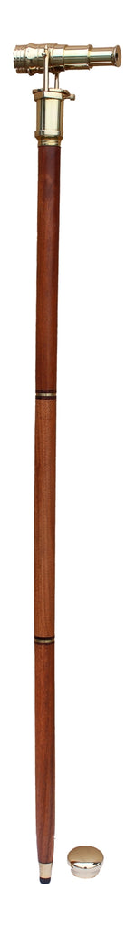 Spazier/Wanderstock aus Holz/Messing mit integr. Teleskop und Schnapsröhrchen- 3geteilt mit Messingknauf. Länge 99 cm, Durchmesser 2,5/4,5 cm.
