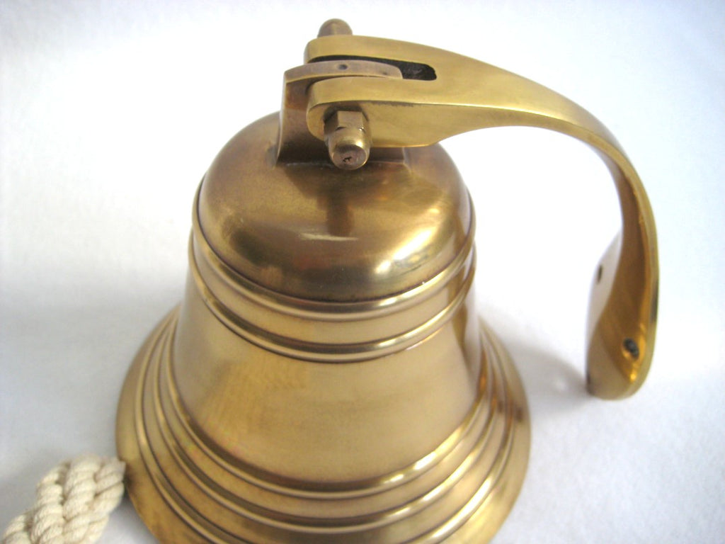 - Traumhafte Glocke unbeschriftet aus massiv Messing gefertigt- Altmessing Optik- anlaufgeschützt, kein polieren. Maße komplett mit Halterung und Bändsel- Länge ca. 36 cm, Durchmesser der Glocke unten 10 cm.