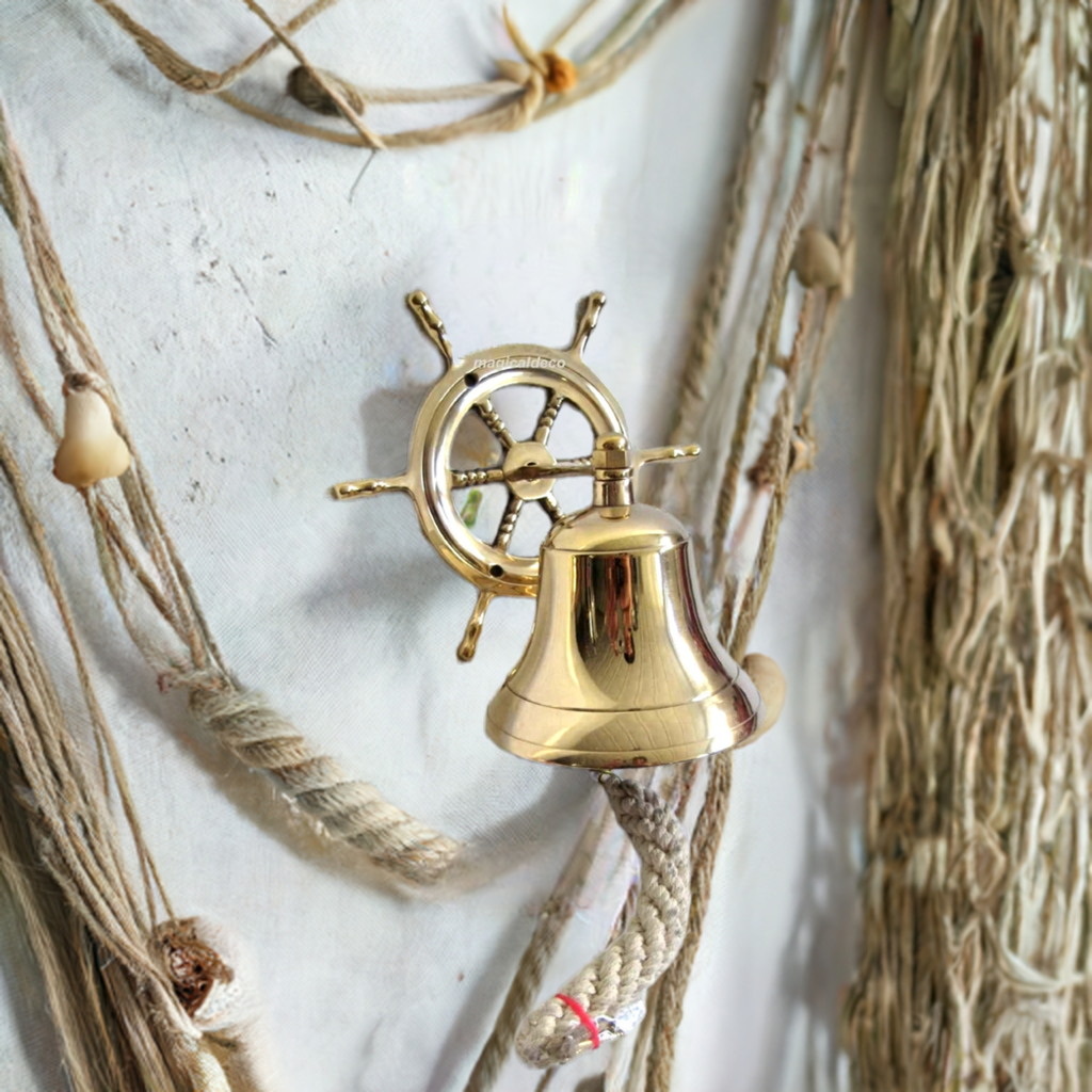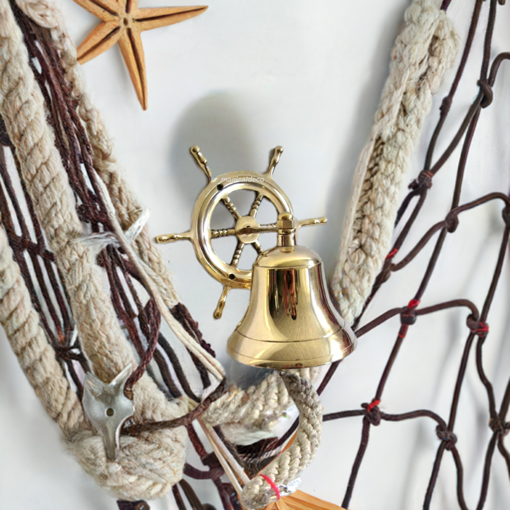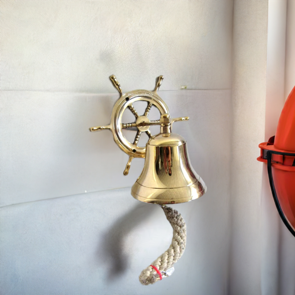 Dekorative Schiffsglocke Steuerrad aus Messing mit Halterung und Bändsel - Gewicht 620 g