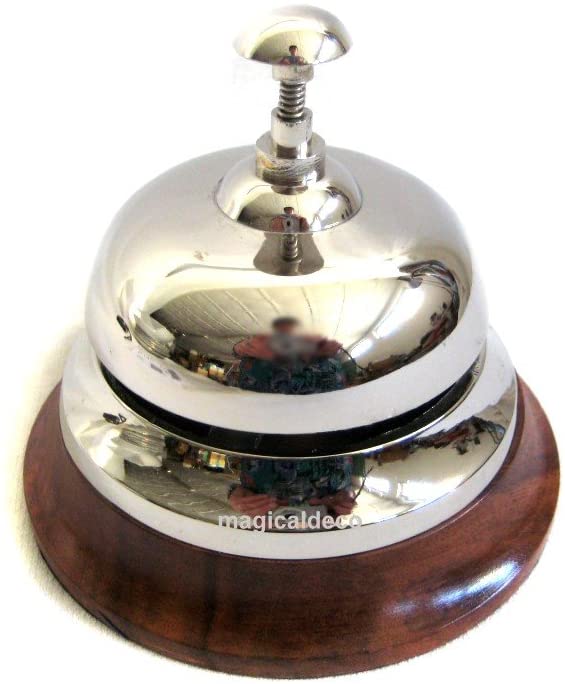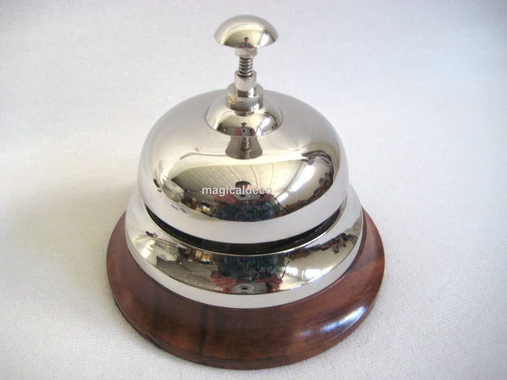 Rezeption- Empfang- Thekenklingel- Service-Tischgong-Hotelglocke, vernickelt auf Holz