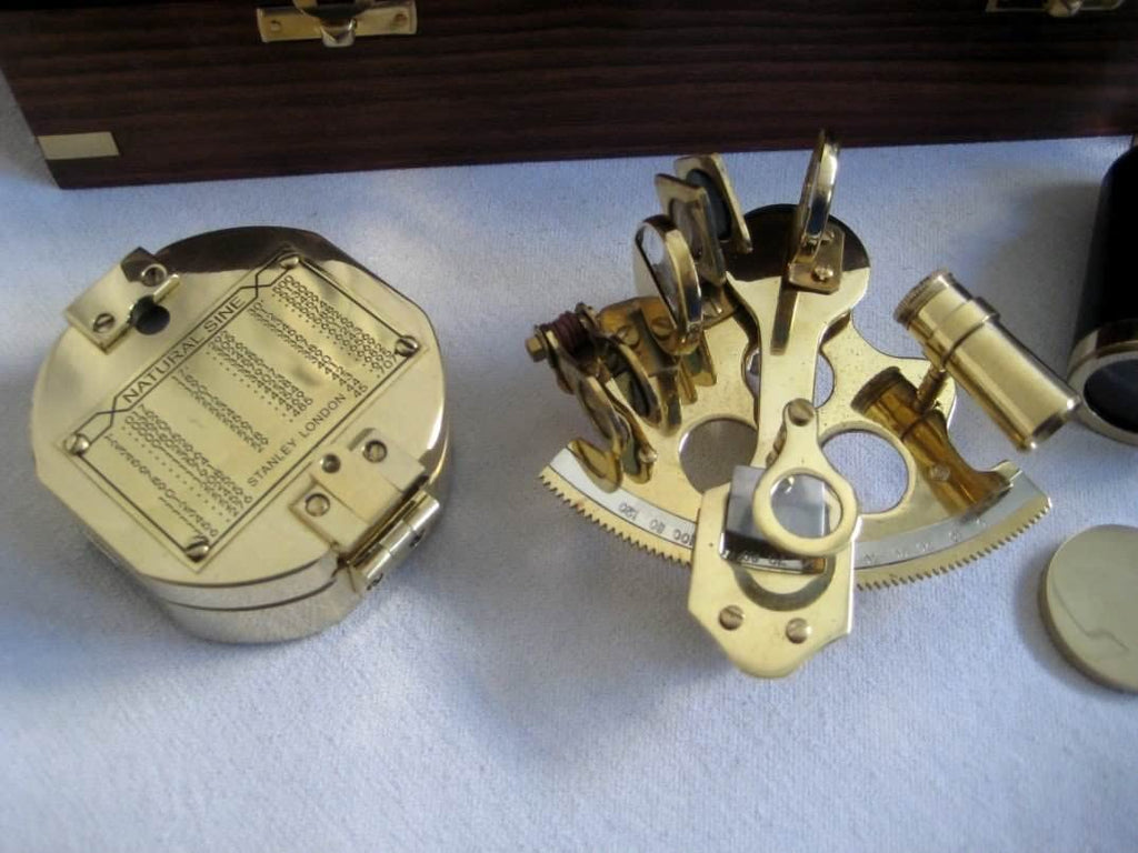 Sextant, Teleskop + Brunton Kompass incl. Holzbox