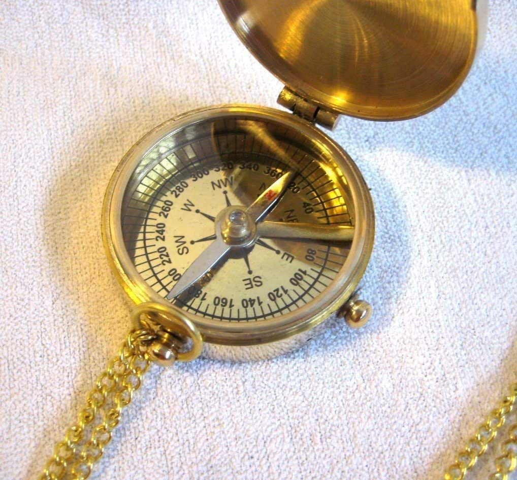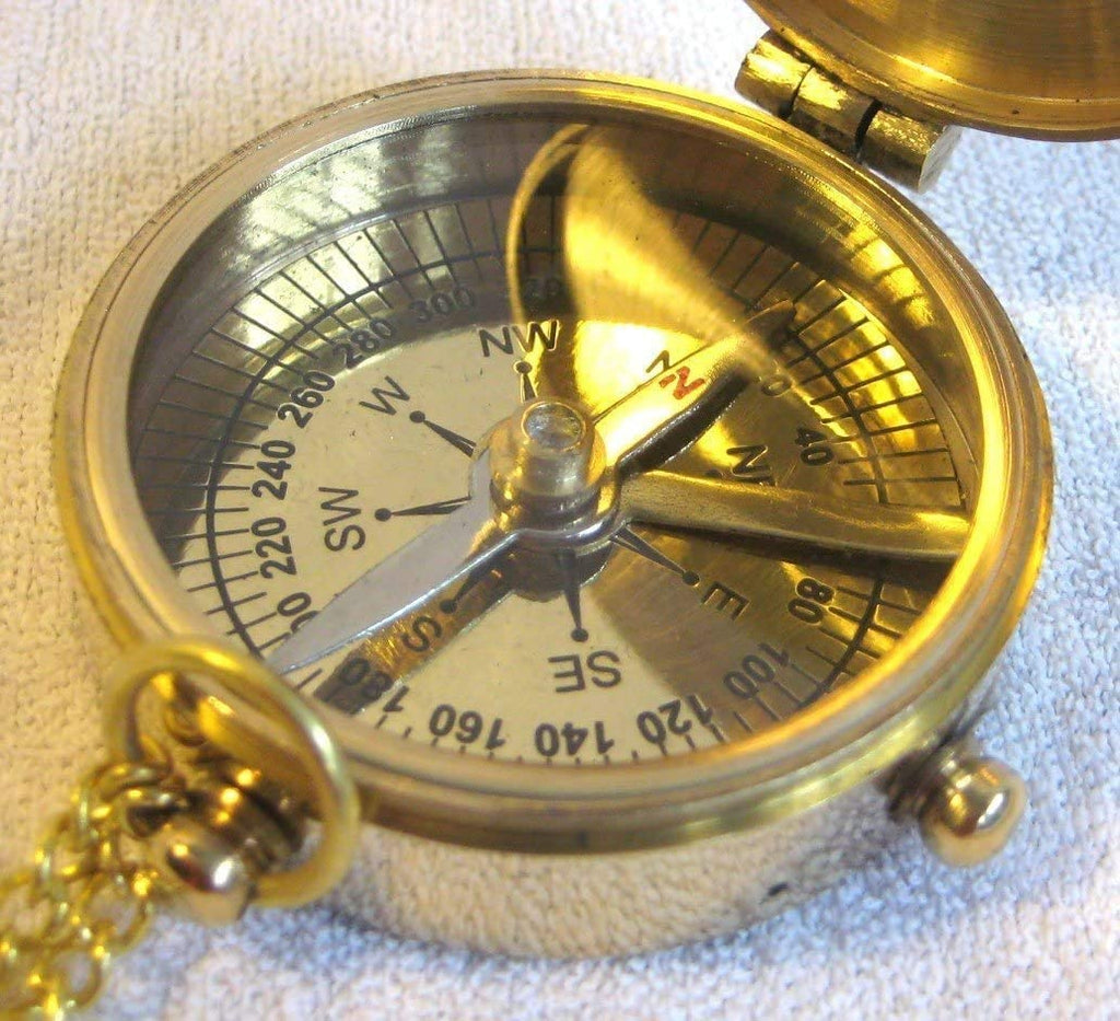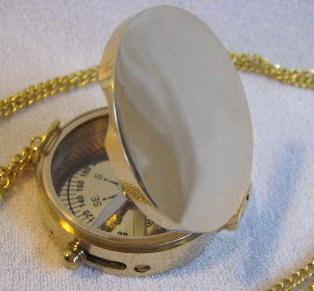 - Taschenkompass aus Messing gefertigt. Maße Kompass- Durchmesser 5 cm, Höhe 2 cm. Der Kompass ist funktionstüchtig, aber nicht für den rein professionellen Einsatz geeignet.