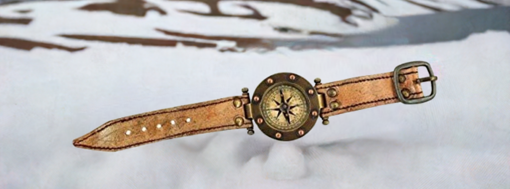 - Kompass im Armband (Leder) aus Messing im Antikstil. Maße 27,5x 5,2 cm. Der Kompass ist funktionstüchtig, aber nicht für den rein professionellen Einsatz geeignet.