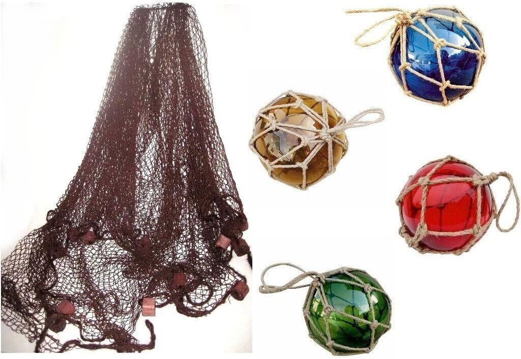 - Tolles 5er Set - maritime Dekoration. Großes Fischernetz, braun eingefärbt mit Korken- 250x 250 cm und Fischerkugeln- Durchmesser jeweils 17,5 cm.