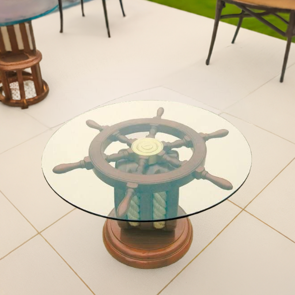 Maritimer Tisch- Beistelltisch Steuerrad- Holz und Glas Ø 65 cm