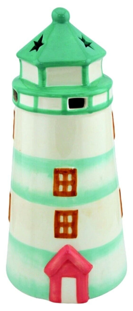 Großer Teelichthalter in mint aus Keramik 31,5 cm- Leuchtturm
