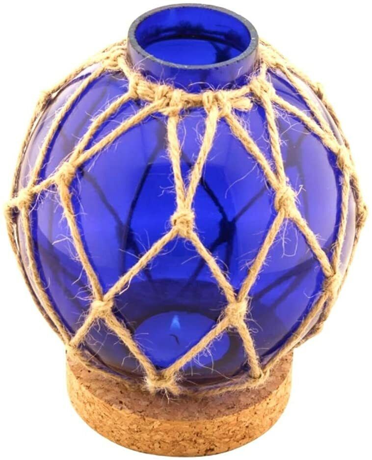 Maritimer Teelichthalter aus Glas, Kork und Tau. Maße 13x 13x 16 cm.