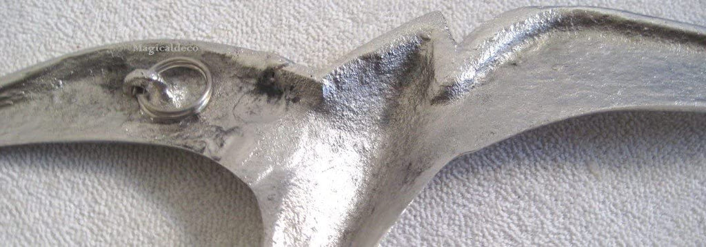 Möwe 25 cm- Wanddeko mit Aufhängeringen- aus Messing vernickelt - Maritime Deko