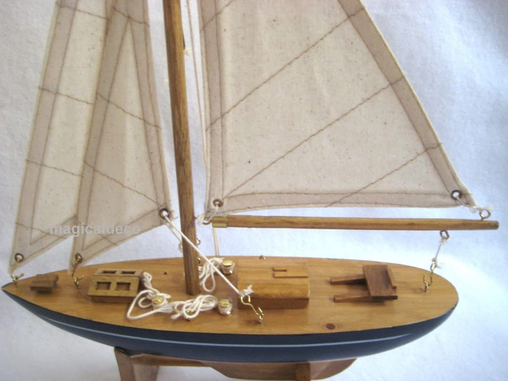 - Detailliert aus Holz gefertigtes Schiffsmodell mit Stoffsegeln. Die kleine Yacht hat die Maße von ca. 36x 25 cm, Breite ca. 8 cm und ist handgefertigt. Das Modell kommt mit umgelegtem Mast zu Ihnen, da sonst der sichere Transport nicht gewährleistet wäre. Der Aufbau ist aber sehr einfach und für jeden zu bewältigen. Sehr guter Nachbau und originalgetreu.