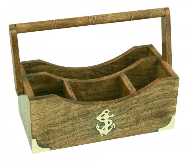 - Caja de almacenamiento marítima de madera con incrustaciones de latón y motivo de ancla para guardar diversos utensilios. Dimensiones totales aprox. 23x 10x 17 cm. ¡Una idea de regalo muy especial y muy llamativa! Entrega sin contenido.