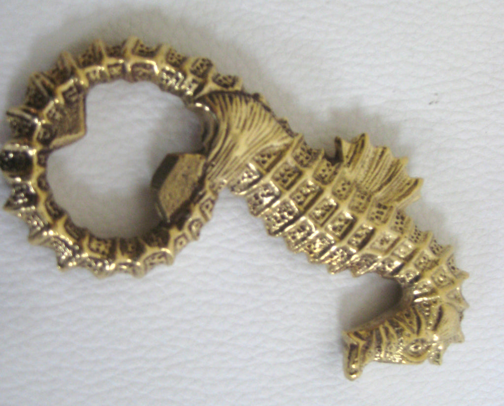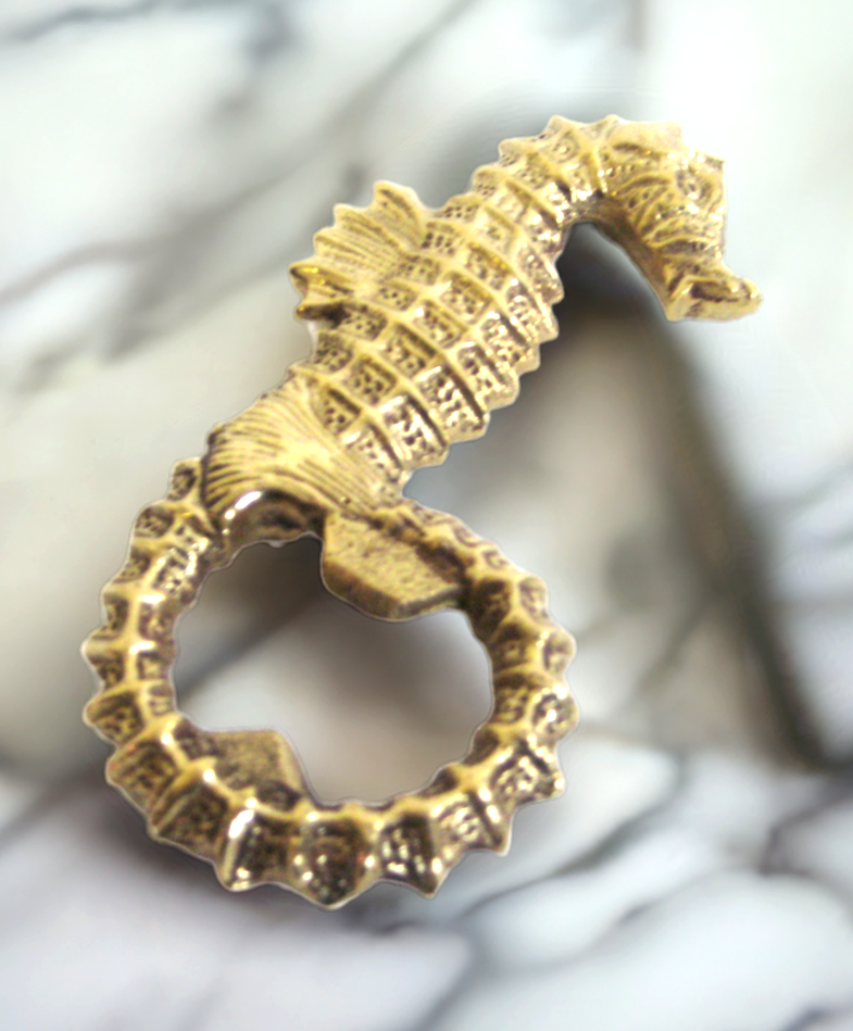 Destapador de botellas de latón macizo con diseño antiguo de caballito de mar.