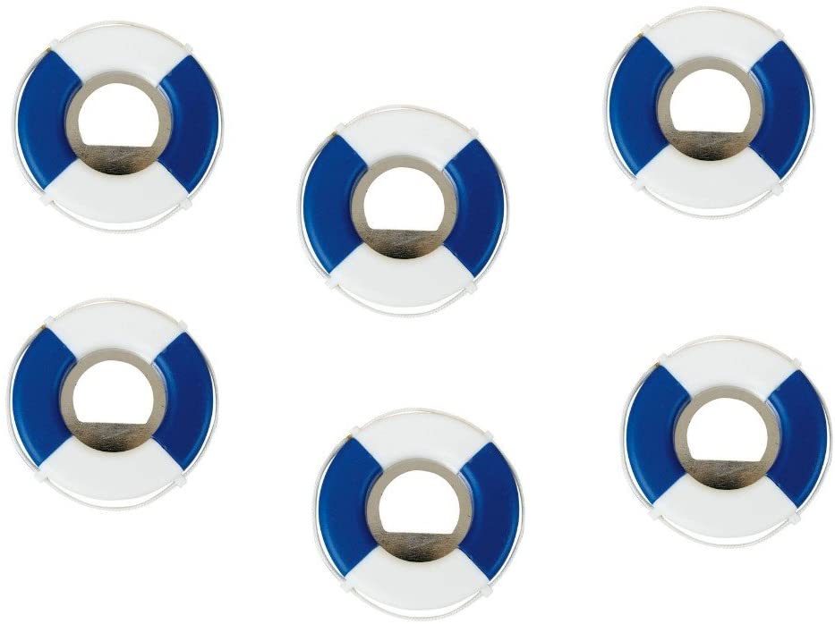 Paquete de 6 - Abridor de botellas marítimo - aro salvavidas - azul y blanco