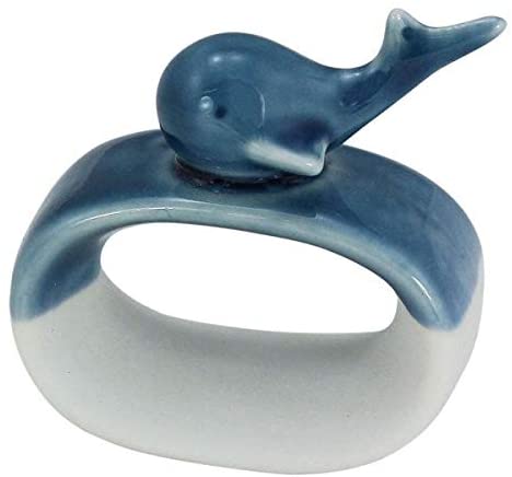 Servilletero - vidriado - marítimo - ballena - azul/blanco + 20 servilletas - marítimo