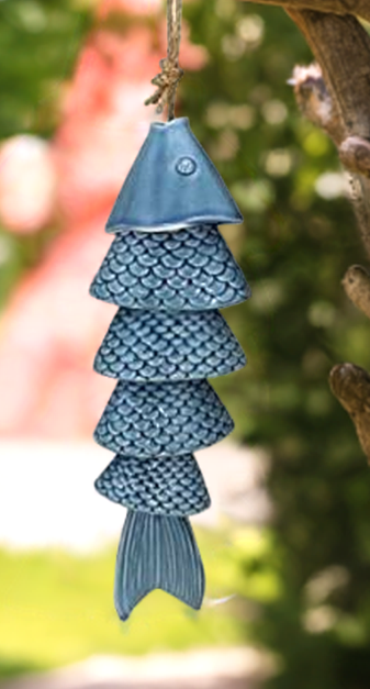 - Peces decorativos marítimos, tallados en loza cubierta con esmalte. Dimensiones totales aprox. 29x 9,5x 5,5 cm. Gran campanilla de viento, gran sonido.