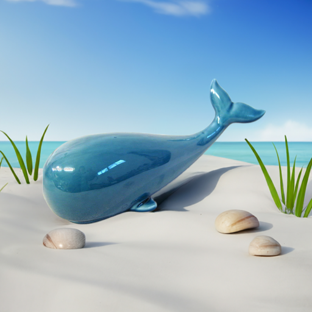 - Ballena decorativa marítima realizada en gres recubierta de esmalte.