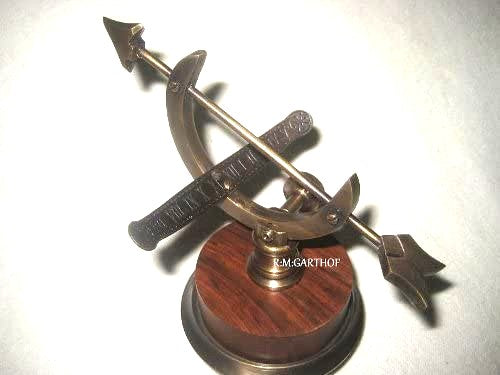 • Muy bonito reloj de sol de estilo nostálgico sobre un soporte de madera. Material latón, bruñido - protegido contra el deslustre. Dimensiones totales 13x8 cm.