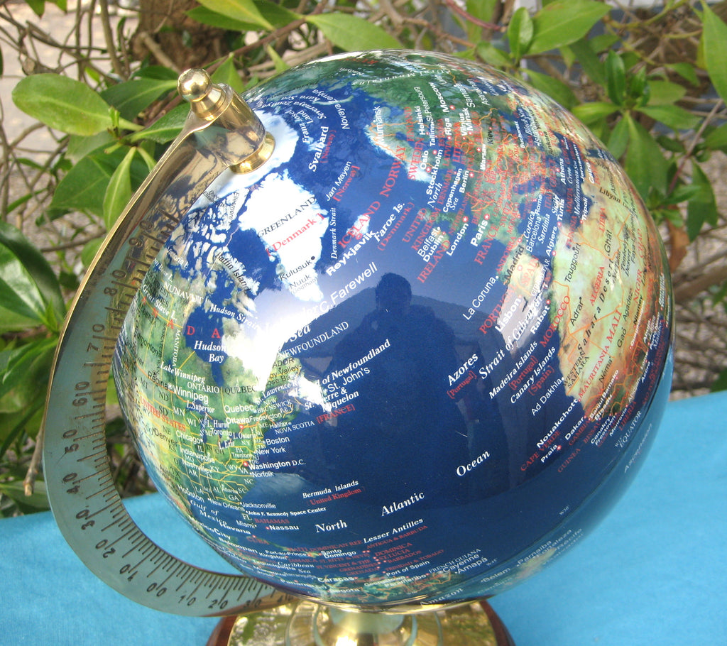 - Globo terráqueo muy bonito y decorativo sobre una base de madera. Material del marco madera y latón, globo terráqueo de plástico. Esta hermosa pieza también es un muy buen regalo. Alto aprox. 47 cm, diámetro 30/20 cm.