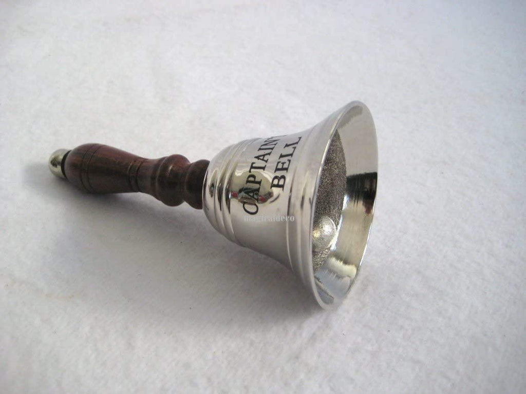 Campana estable de latón niquelado con mango de madera Al. aprox. 16 cm