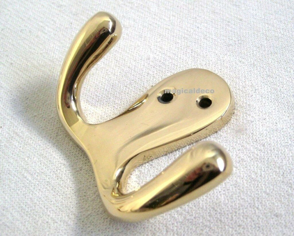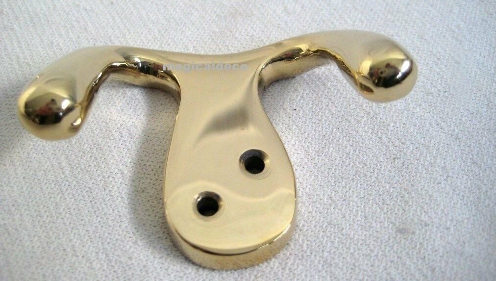 - Paquete de 3: bonitos ganchos de pared dobles de latón cubiertos con un barniz protector. Dimensiones 6,5x 5x 2,5 cm cada una. Peso 80 g cada uno.