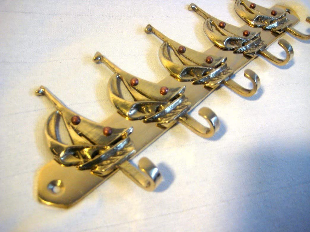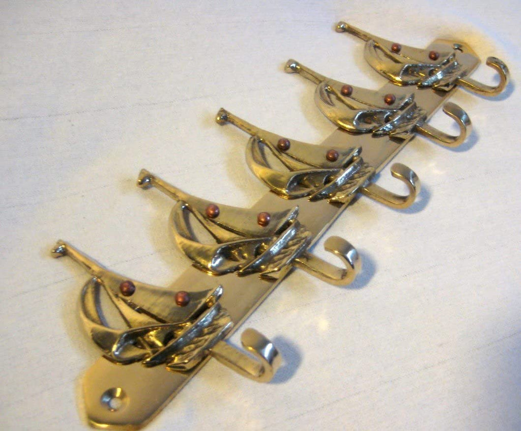 Perchero - motivo barco/marinero - 5 ganchos - 26 cm - latón antiguo - 275 g