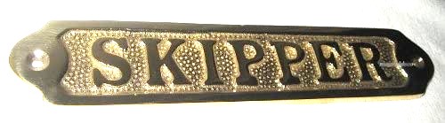 - 4x carteles para puertas macizos, de latón, con la inscripción 1. Capitán 2. Baños 3. Patrón 4. Cabina. Ancho de los carteles 3,5 cm, largo entre 21,5 y 17 cm.