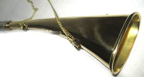 - Sirena de niebla de boca marítima fabricada en latón con cadena, Ø: 9,5cm. La boquilla está plateada y la longitud total es de 30 cm. Un excelente accesorio ya sea en el mar con niebla o en el estadio. Nueva producción basada en plantilla antigua.