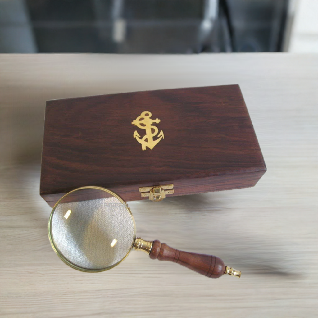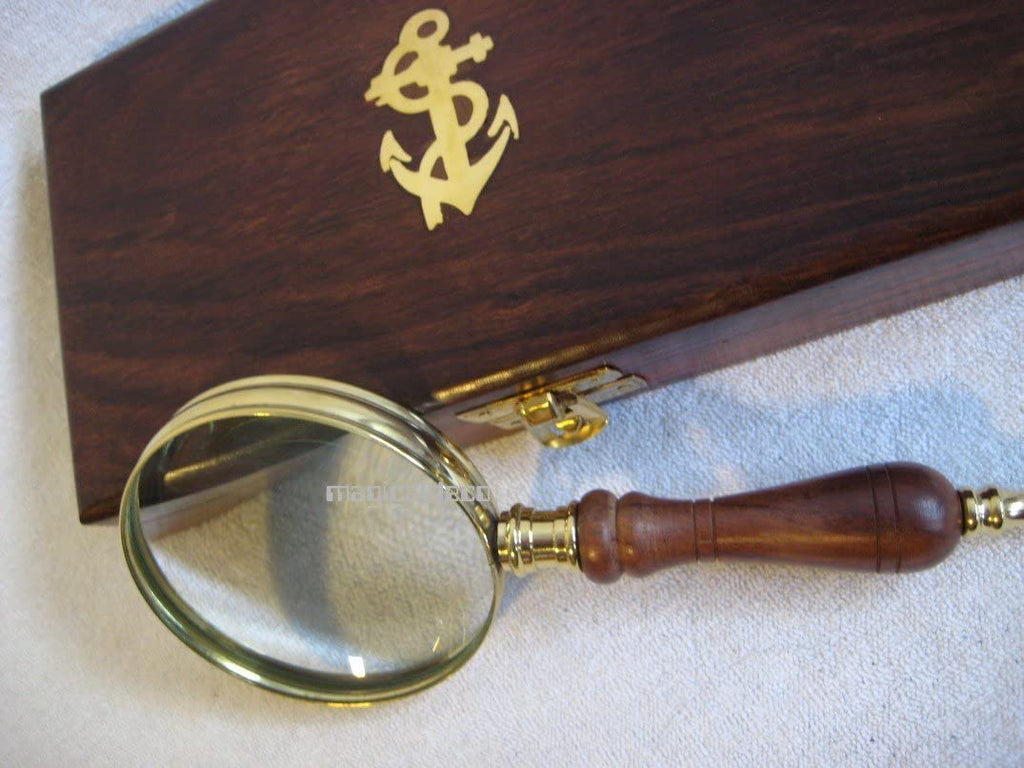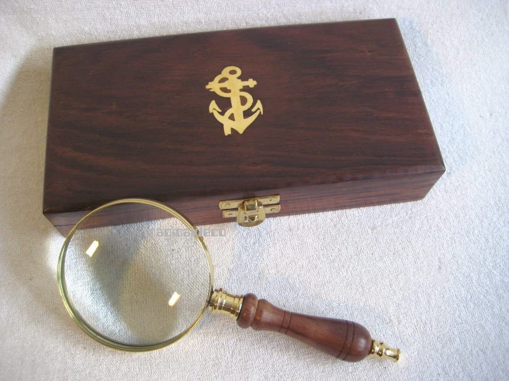 Lupa de lectura grande, lupa - lupa de latón y mango de madera, incluye caja de madera