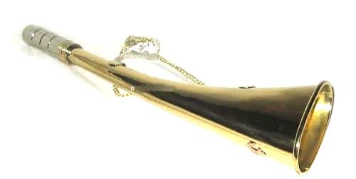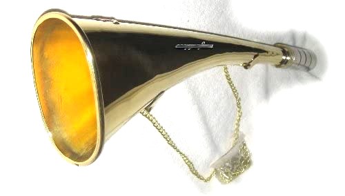 - Sirena de niebla de boca marítima fabricada en latón con cadena. La boquilla está plateada y la longitud total es de 23 cm. Un excelente accesorio ya sea en el mar con niebla o en el estadio. Nueva producción basada en plantilla antigua.