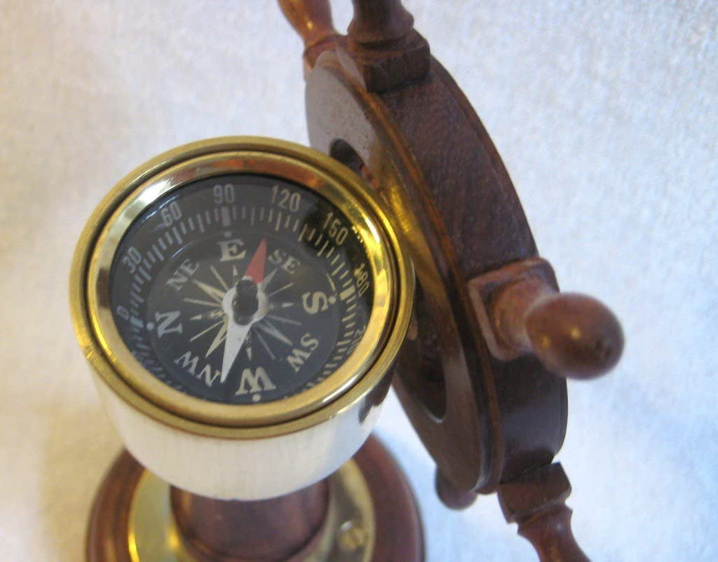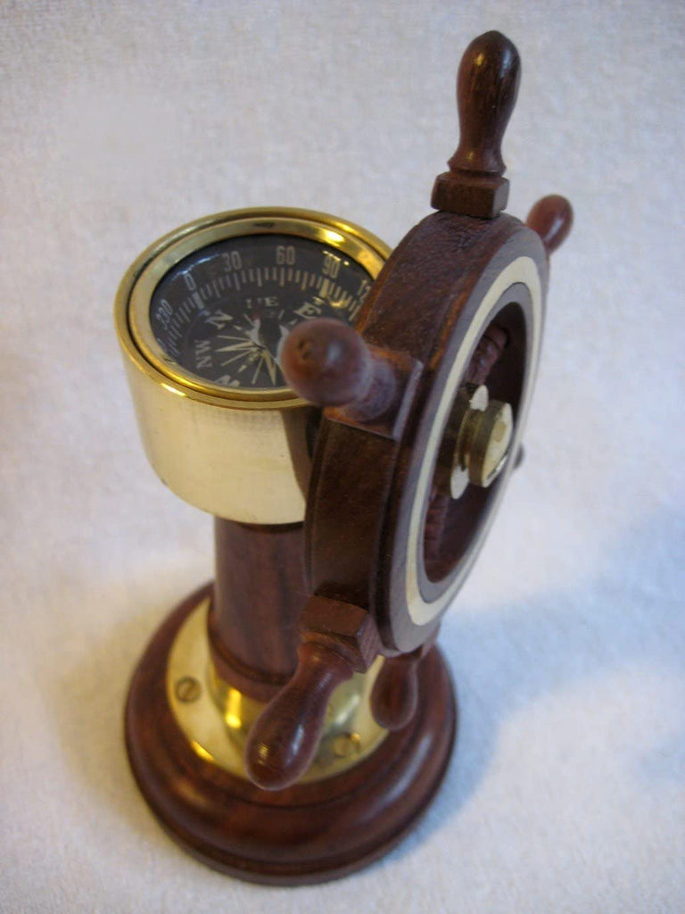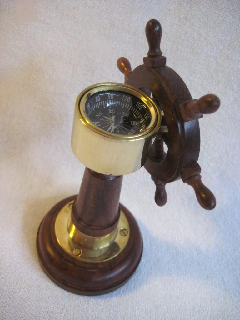 Soporte para barco - soporte para barco - volante y brújula de madera y latón