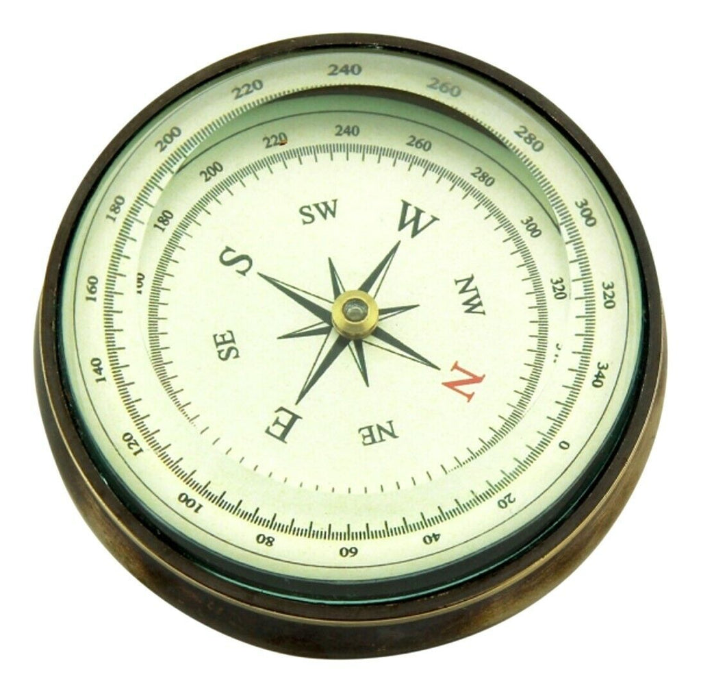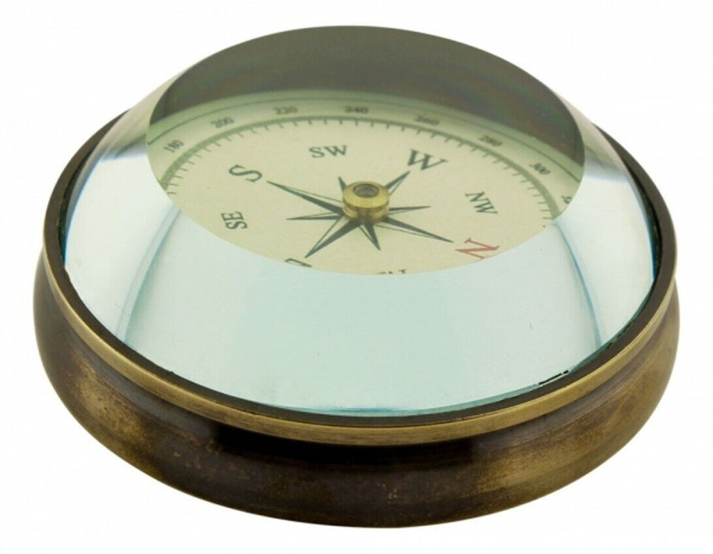 Brújula de mesa, brújula, navegación, cúpula de cristal antigua de Meesing