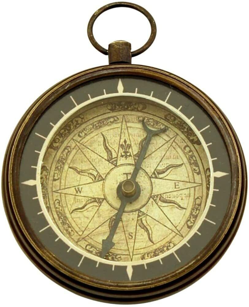 Brújula decorativa de latón de estilo antiguo. Dimensiones 5,5x 1,3 cm.