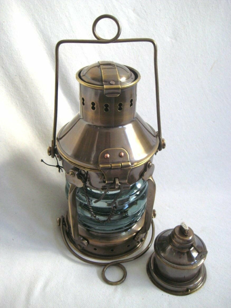 - Lámpara de barco sólida y elegante - lámpara de barco - lámpara colgante. Material vidrio grueso y latón, bruñido - resistente al deslustre - brillo mate - con quemador de petróleo, altura 24 cm, Ø 12 cm. Versión pesada - peso aprox. 2500 g.