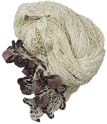 - 3. Red de pesca grande con flotadores de algodón, natural. Dimensiones aprox. 3,4x 3,4m.