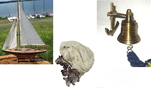 Set de regalo compuesto por yate de vela, campana de barco con ancla + red de pesca XL de 3,4 m