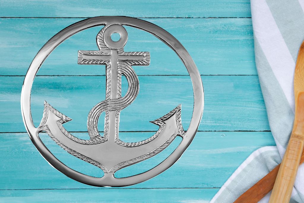 Posavasos marítimo de latón niquelado - motivo ancla - 19 cm