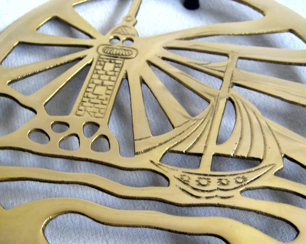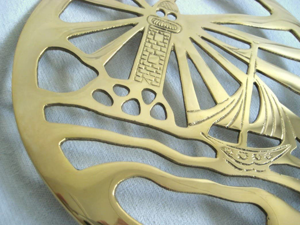 - Posavasos marítimo de latón con motivo de faro y marinero, diámetro de 19,5 cm. Pies estables de goma dura en la parte inferior. Procesamiento sólido. ¡Un tipo especial de decoración marítima y un gran atractivo!