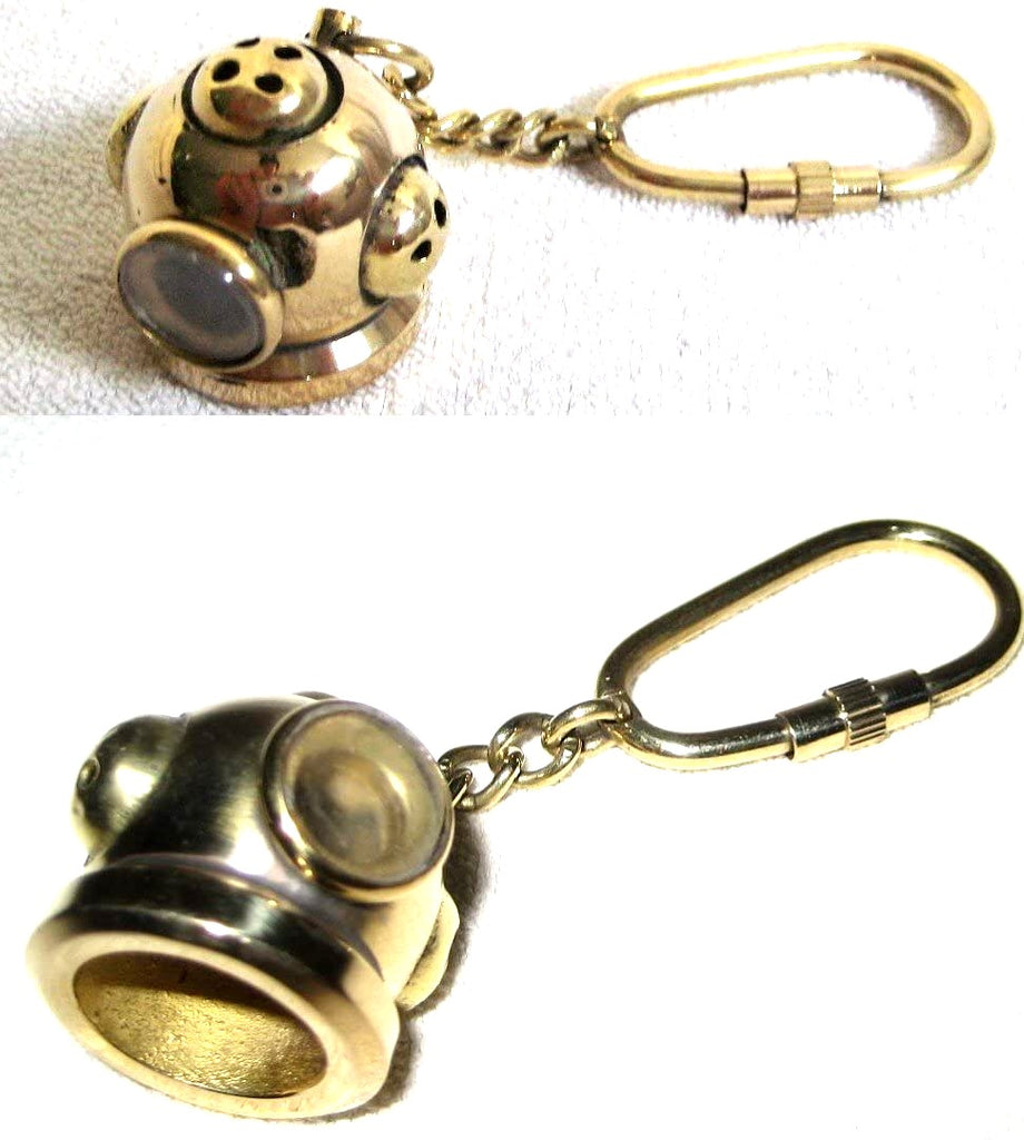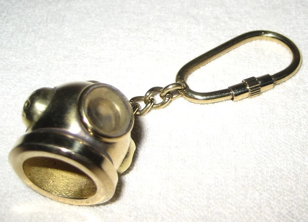 2X llavero campana de buceo - 41g latón macizo L 9 cm - mosquetón