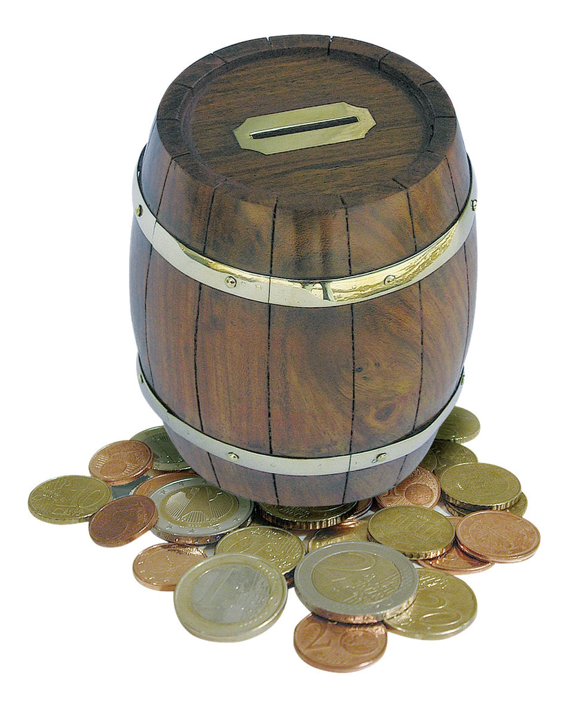 Barril de hucha original - barril de madera - latón y madera - rústico
