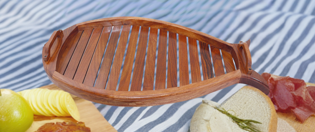 - Bol decoratif ovale en bois - émaillé parcial de estilo marítimo.