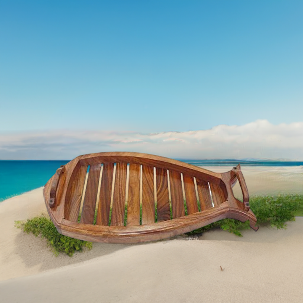Bandeja decorativa de madera de estilo marinero. Dimensiones 47x 25,5x 5,5 cm.