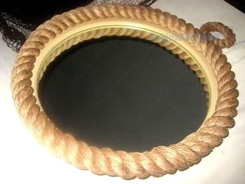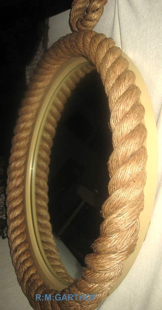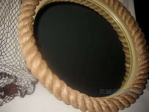 - Espejo marítimo, rústico con cuerda gruesa. ¡Muy original y realmente llamativo de un modo especial! Alto 56 cm, Ø: 44/35 cm. Bastante pesado: se estima que pesa 6000 g.