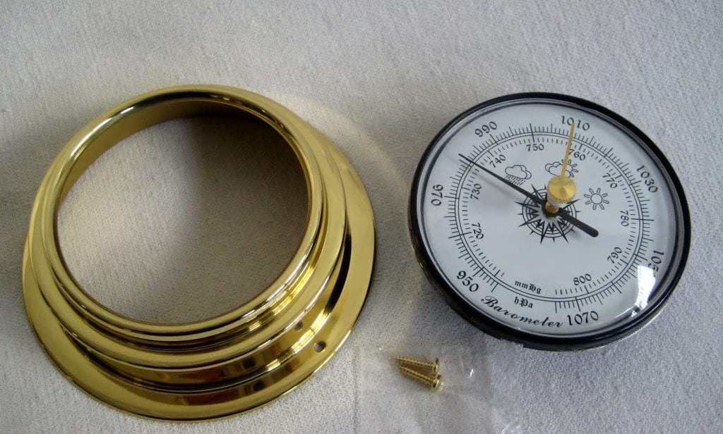 Barómetro pequeño y ligero en forma de ojo de buey, de latón, 78 g, 10 cm de diámetro