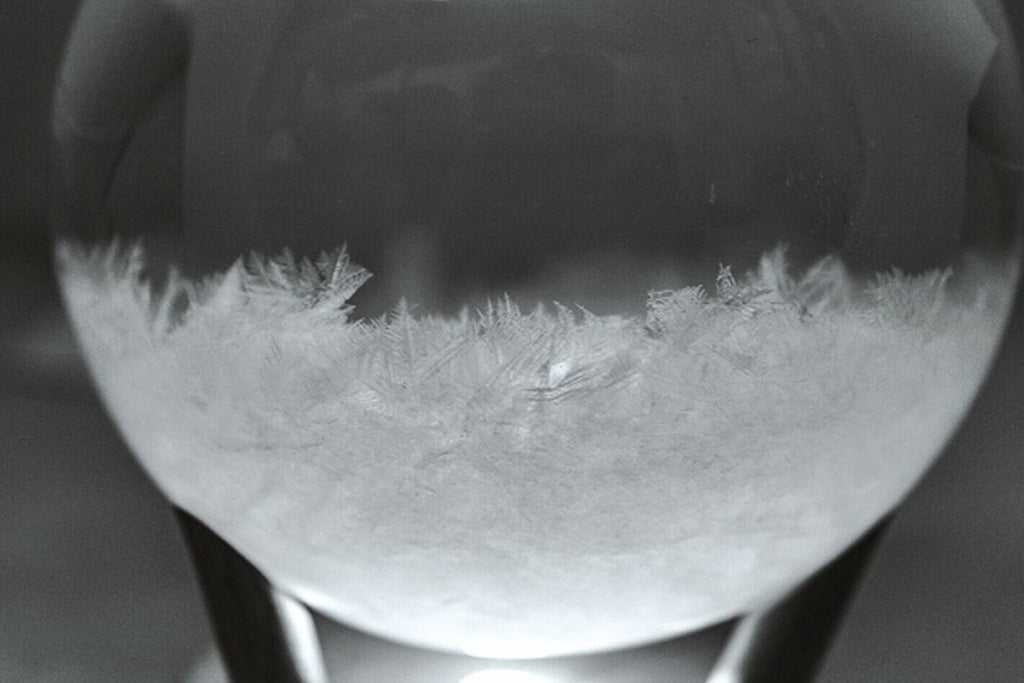 Vidrio de tormenta moderno con iluminación LED integrada (batería no incluida), con diferentes funciones. Realizado en madera a partir de plantillas antiguas. Dependiendo de los cambios en la temperatura exterior y el clima, aparecen diferentes cristales en el cristal. La solución transparente se compone de varias sustancias químicas. A medida que cambia el clima, una selección de cristales cambia de forma. Dimensiones 15x12cm.