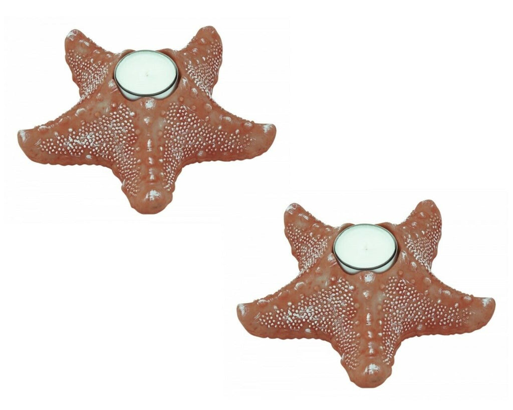 2X portavelas estrella de mar, marítimo - 17 cm - albaricoque