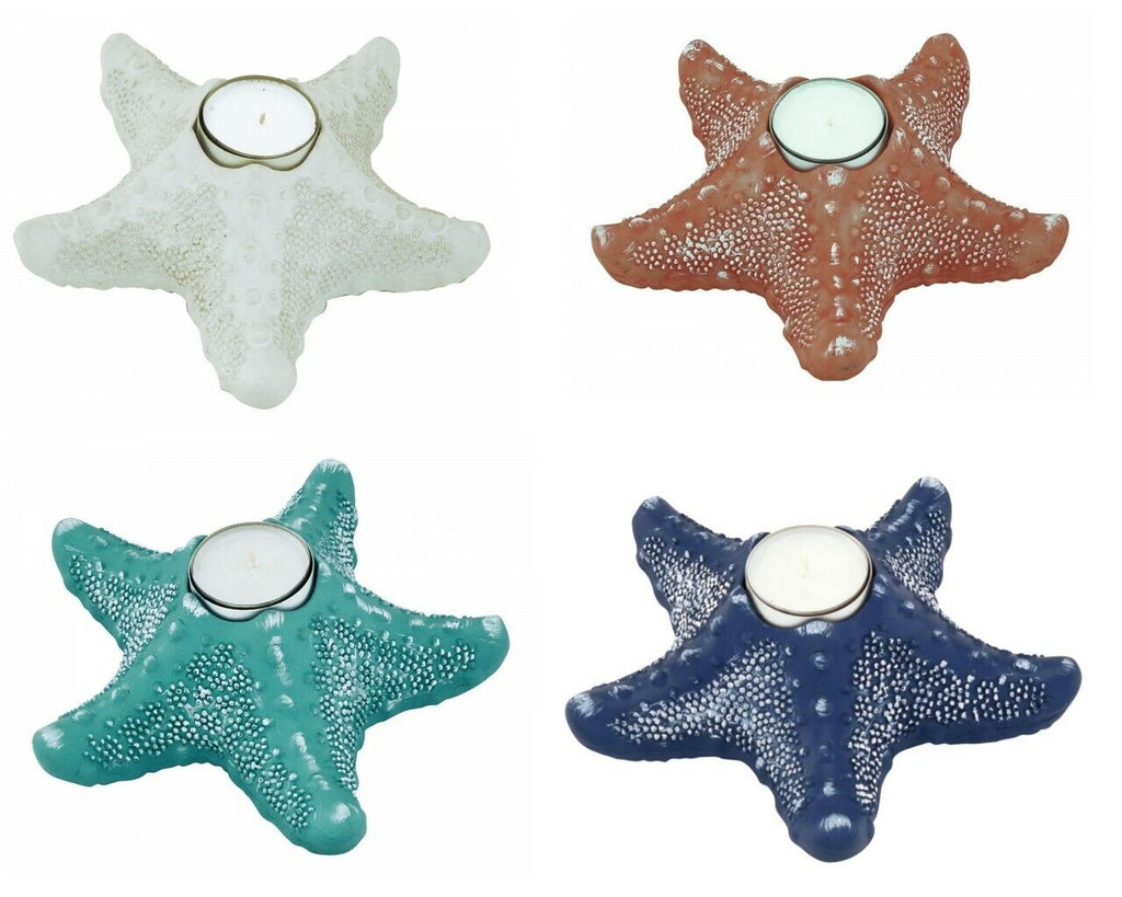 4X portavelas estrella de mar, blanco marítimo-azul-albaricoque, turquesa 17 cm