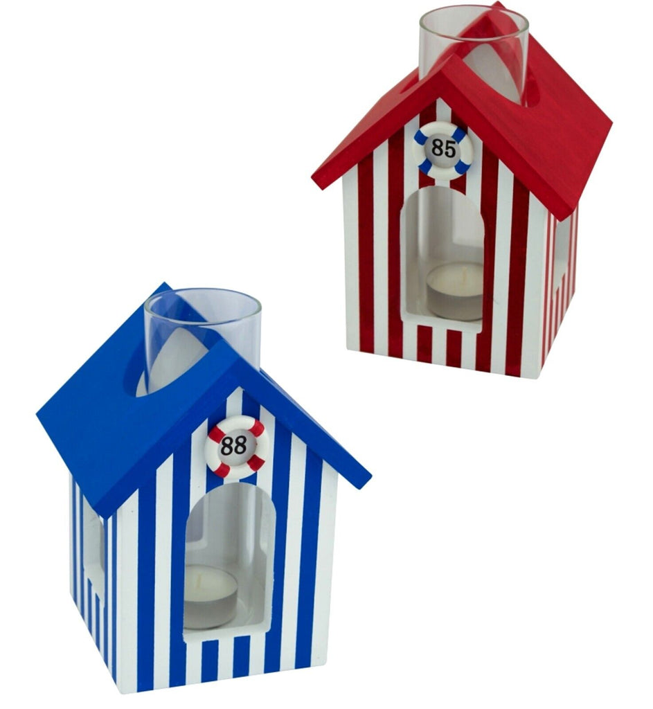 2X Portavelas Marítimos fabricados en madera y cristal, pintados a mano. Dimensiones 13x 11x 16,5 cm cada una.